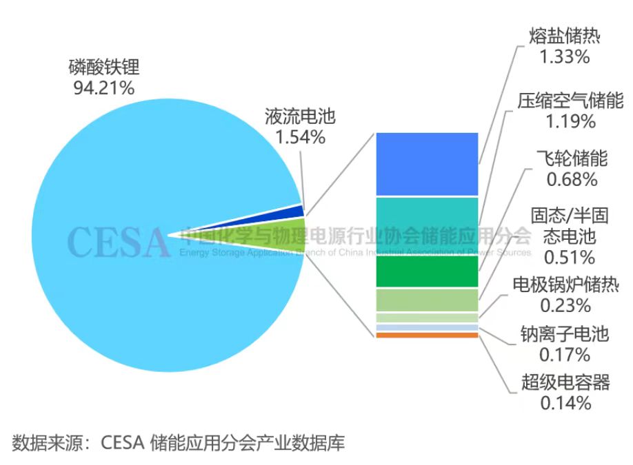 图 2025年1-6月新型储能各技术路线新增装机功率占比
