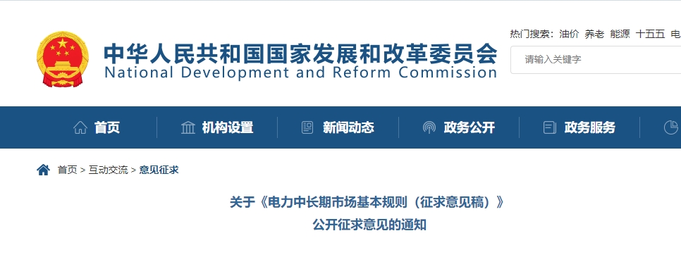 9月2日,国家发改委印发关于《电力中长期市场基本规则(征求意见稿)》公开征求意见的通知。