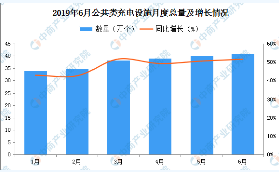 具体来看,据数据显示,截至2019年6月,联盟内成员单位总计上报公共类充电桩41.2万台,其中交流充电桩23.6万台、直流充电桩17.5万台、交直流一体充电桩0.05万台。2019年6月较2019年5月公共类充电桩增加10926台。从2018年7月到2019年6月,月均新增公共类充电桩约11656台,2019年6月同比增长51.5%。