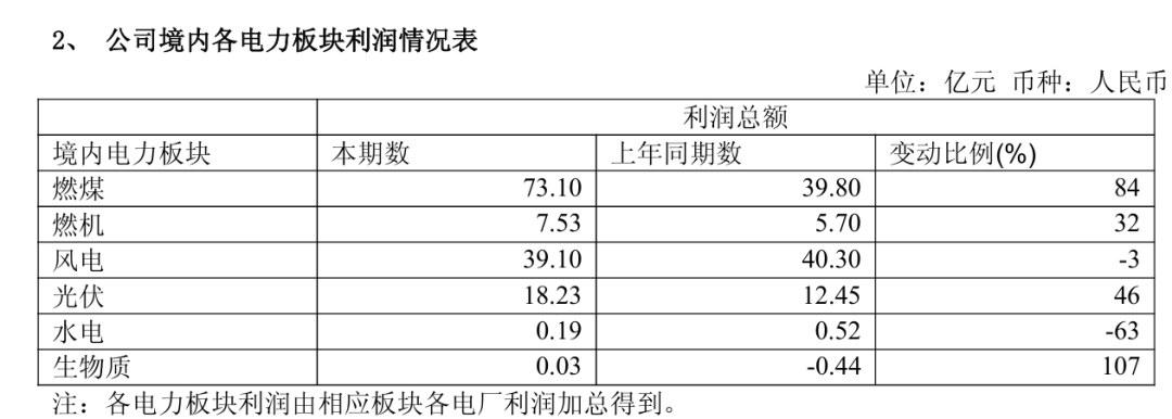 上半年,公司火电板块税前利润汇总金额为人民币80.66亿元,同比增利人民币35.60亿元;风电板块税前利润汇总金额为人民币39.10亿元,同比减利人民币1.21亿元;光伏板块税前利润汇总金额为人民币18.23 亿元,同比增利人民币5.78亿元。