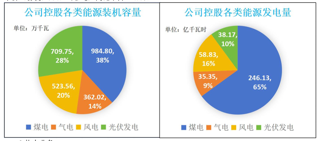 截至报告期末,公司总装机容量达到80,889.68兆瓦,其中京津冀、东南沿海区域是公司火电装机最为集中的区域,水电项目大多位于西南地区,风电、光伏广布全国资源富集区域。公司大力推进低碳清洁能源转型,报告期内,公司清洁能源新增装机容量1,117.45兆瓦,其中火电燃机新增502.47兆瓦、风电新增167.45兆瓦、光伏新增447.53兆瓦,公司低碳清洁能源装机占比进一步提升至40.87%,较去年末提高0.5个百分点。