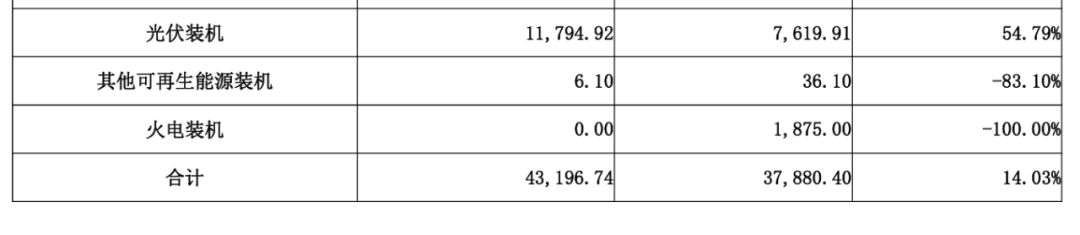 报告期内,公司发电量563.96亿千瓦时,同比增长28.29%,其中风电发电量339.26亿千瓦 时,同比增长12.79%,光伏发电量221.69亿千瓦时,同比增长59.70%。发电量增长主要受 益于装机容量的增长。