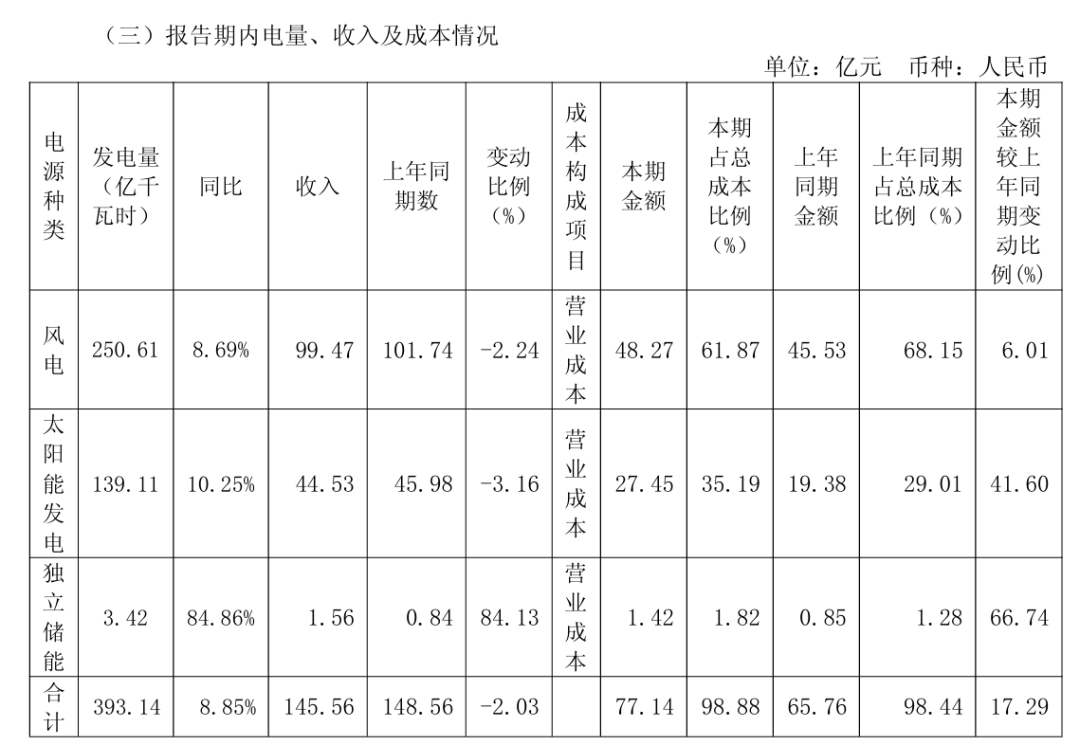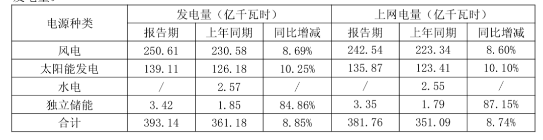 2025年上半年,公司发电量393.14亿千瓦时,同比增长8.85%,其中风电、太阳能、独立储 能发电量增长主要受益于装机增长。公司自2025年1月起不再控股水电项目装机,故未产生水电 发电量。