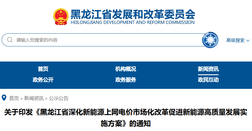 9月15日,黑龙江发改委正式印发《黑龙江省深化新能源上网电价市场化改革促进新能源高质量发展实施方案》。