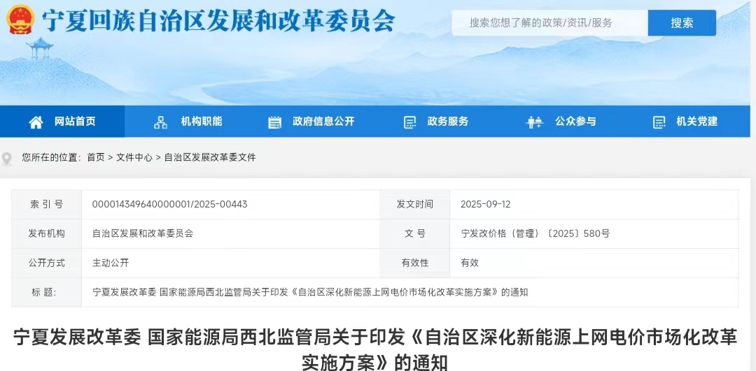 近日,宁夏发改委、西北能监局正式印发《自治区深化新能源上网电价市场化改革实施方案》。