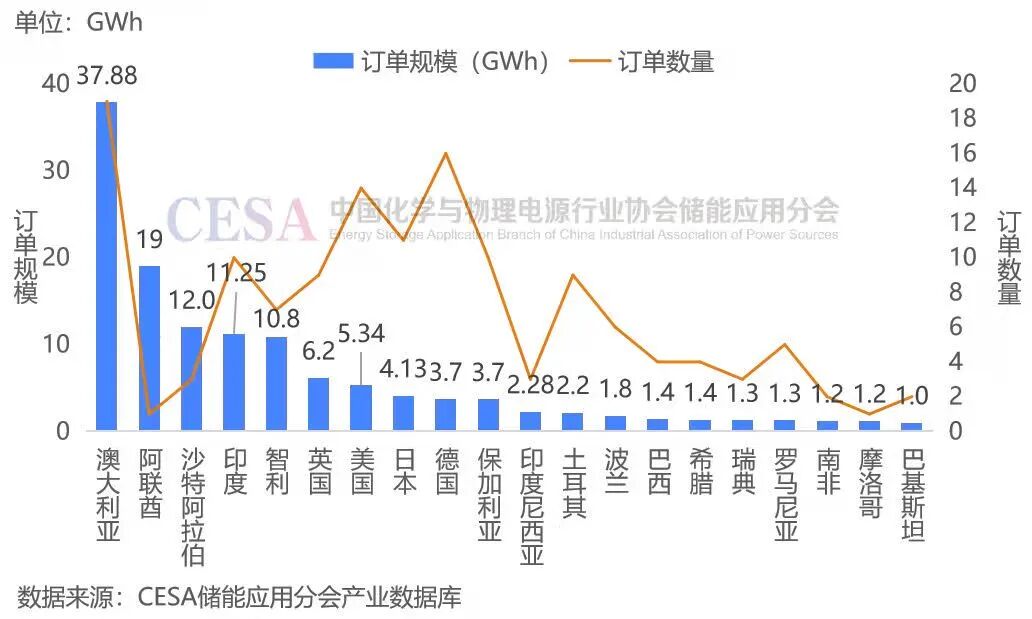 据CESA储能应用分会产业数据库统计,2025年1-8月,中国企业新获253个海外储能订单,总规模180GWh,同比+183%,其中中东38.75GWh,澳大利亚37.88GWh,欧洲32.49GWh,印度11.25GWh,智利10.8GWh。由于受到关税、OBBB法案等影响,美国市场的储能订单仅有5.34GWh。