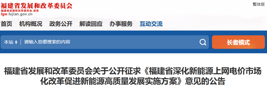 9月19日,福建省发改委就《福建省深化新能源上网电价市场化改革促进新能源高质量发展实施方案(征求意见稿)》公开征求意见。