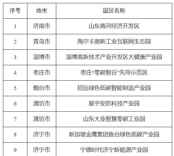 山东省能源局关于公布山东省零碳园区创建名单的通知