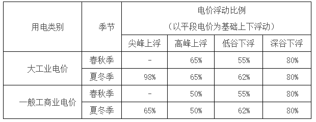 浙江工商业峰谷电价浮动比例