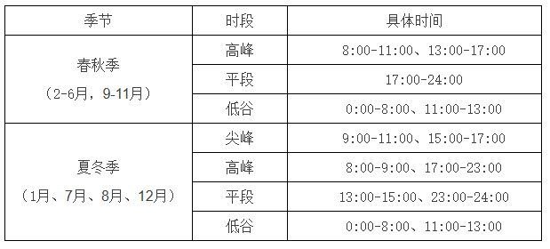 浙江工商业峰谷时段划分