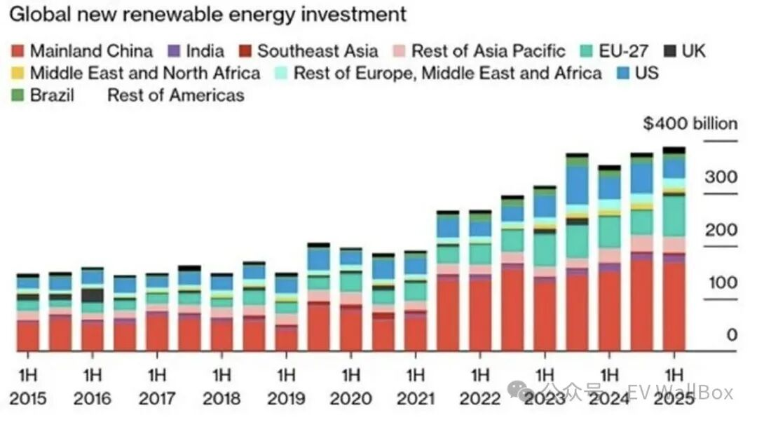 全球投资版图也在发生有趣的变化:资金正从北美部分转向欧洲。2025年上半年,美国的新建可再生能源投资额相较2024年下半年骤降36%,减少了约205亿美元,降至约205亿美元的规模;同期欧盟投资额则猛增63%,较上年下半年增加近300亿美元。美欧此消彼长,折射出政策环境与预期回报对资本流向的巨大影响: