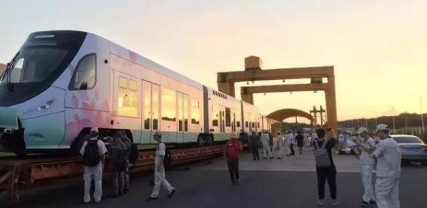 近日,在高明荷富大道上,全国首列氢能源有轨电车上轨。