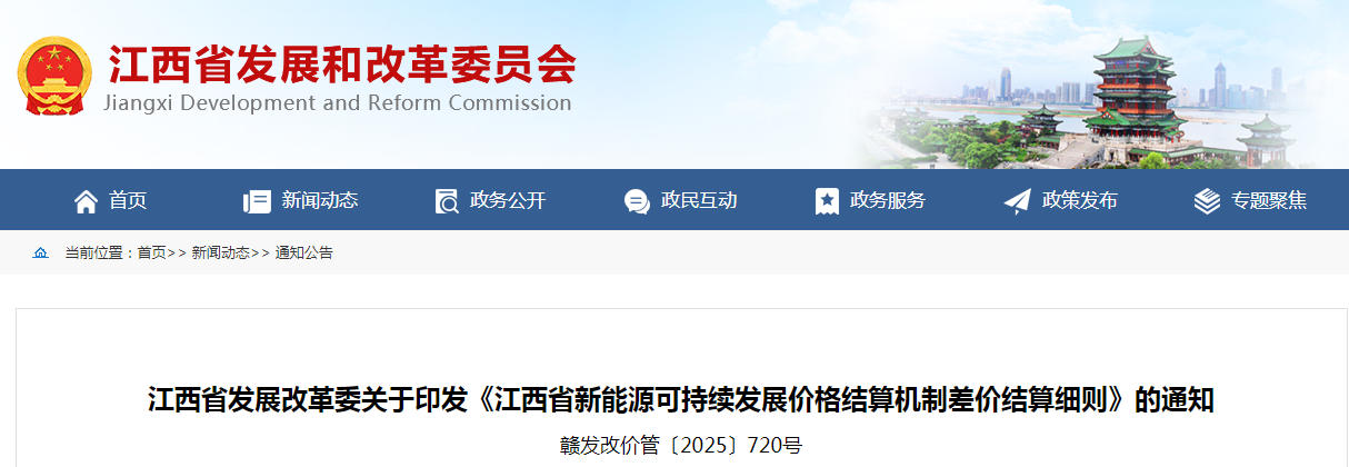为推动新能源高质量发展,根据《江西省发展改革委关于印发〈江西省新能源上网电价市场化改革实施方案〉的通知》(赣发改价管〔2025〕718号),我们制定了《江西省新能源可持续发展价格结算机制差价结算细则》。现印发给你们,请认真组织落实。