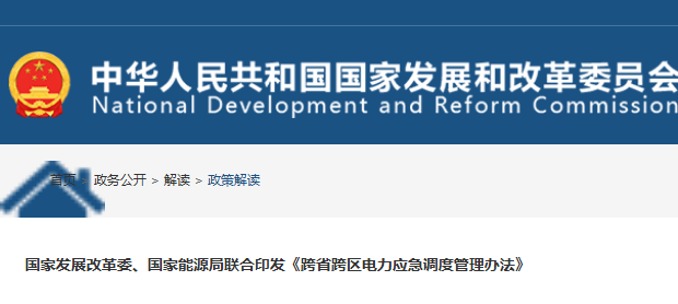 国家发展改革委、国家能源局联合印发《跨省跨区电力应急调度管理办法》