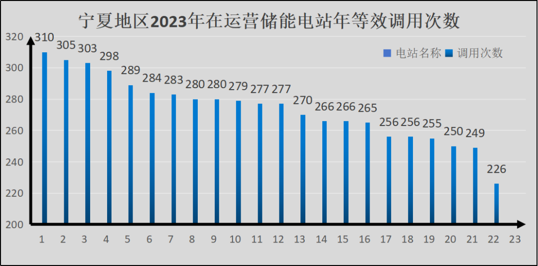 图5:宁夏地区2023年在运储能电站年等效调用次数