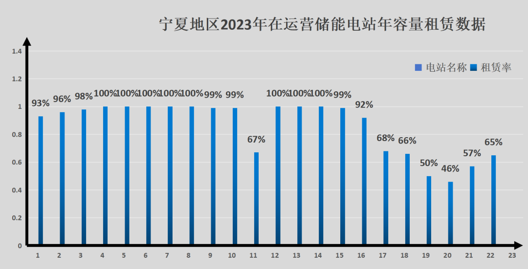 图7:2023年宁夏地区部分储能电站容量租赁率数据统计