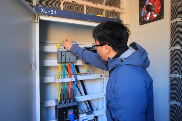 “这是一套完全独立的孤岛型微电网,它不与大电网相连,通过自主发电与储能实现供电。我们配置了150千瓦光伏阵列、两台10千瓦风力发电机组,并配套低温适配型储能电池及保温系统,同时搭载了协调运行与能量管理系统,可实现24小时连续、稳定供电。”哈尔滨工业大学电气工程及自动化学院博士研究生周洋介绍。
