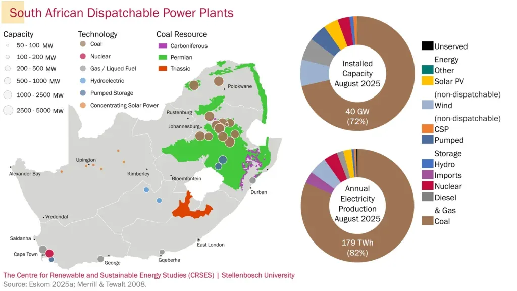南非的可调度发电主要依赖煤炭。图源:南非Stellenbosch 大学可再生与可持续能源研究中心(CRSES)官网