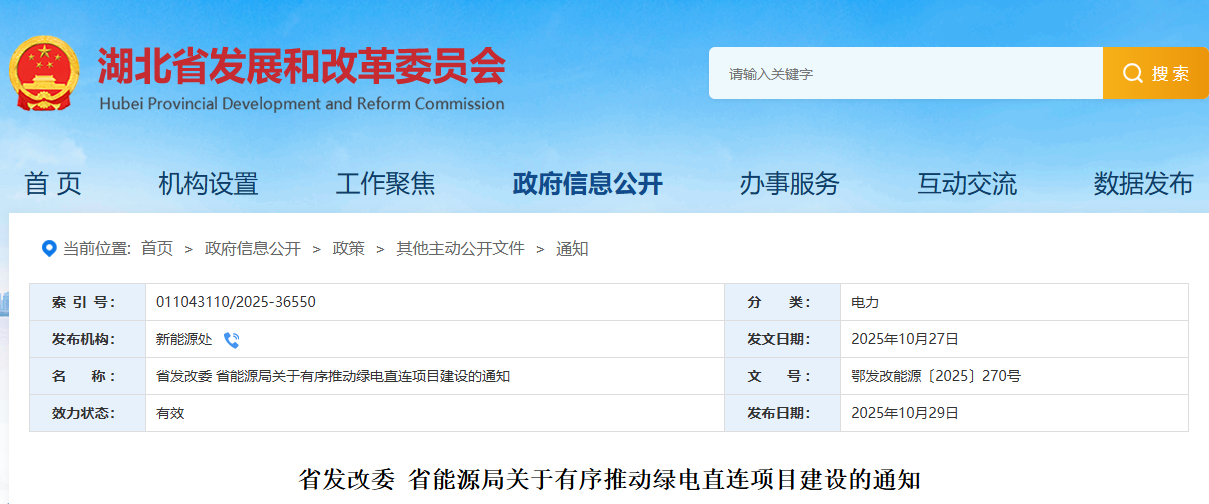 为贯彻落实《国家发展改革委 国家能源局关于有序推动绿电直连发展有关事项的通知》(发改能源〔2025〕650号),结合湖北实际,现就有序推动绿电直连项目建设通知如下。