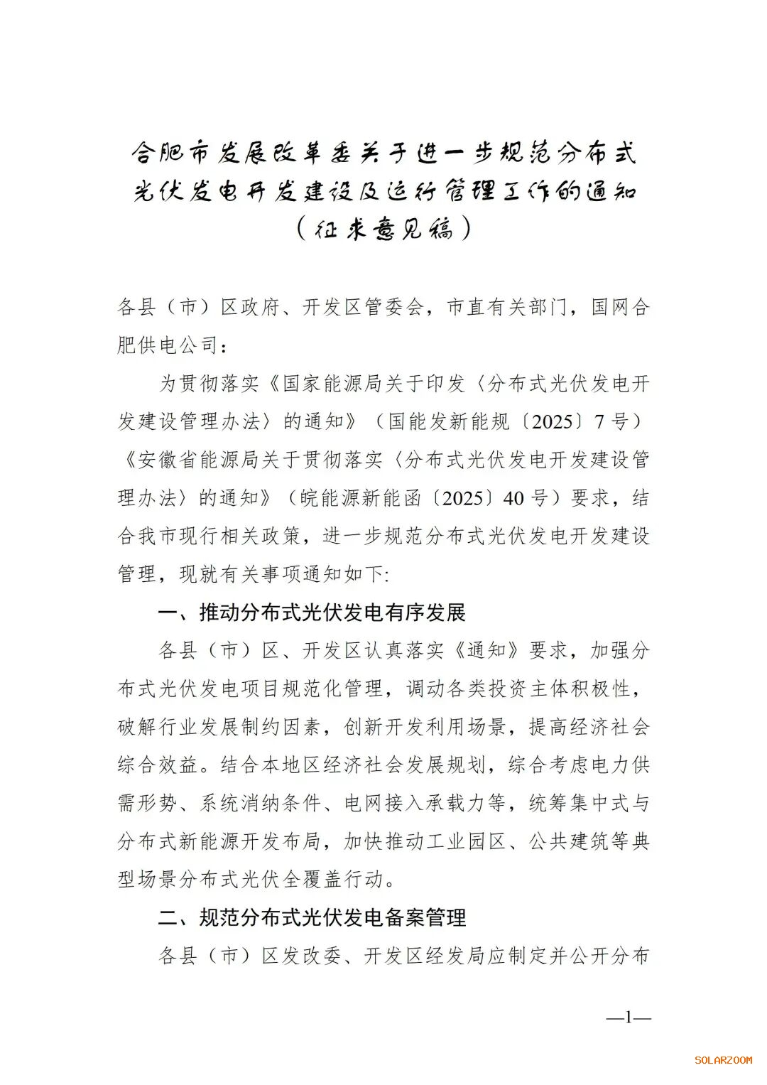 1.合肥市发展改革委关于进一步规范分布式光伏发电开发建设及运行管理工作的通知(征求意见稿).doc