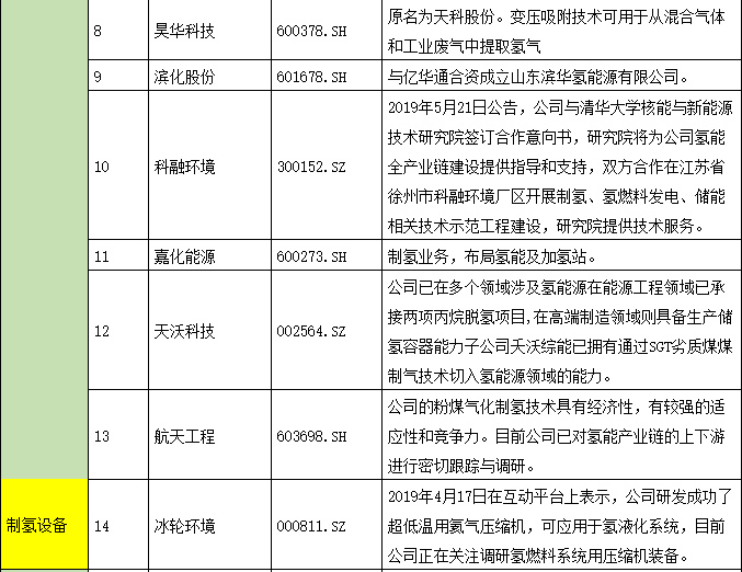 制氢设备方面,仅1家冰轮环境(000811.SZ)。