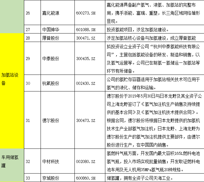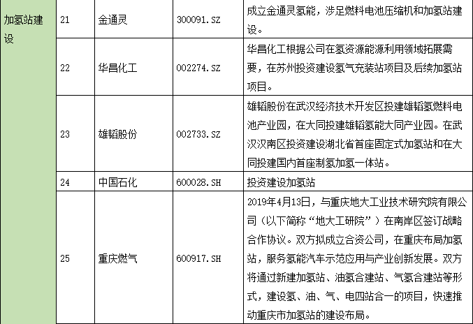 氢燃料汽车发展最基础的加氢站,在我国还属于薄弱环节。目前有11家上市公司参与氢燃料电池汽车加氢站建设。与此同时,加氢站设备方面,目前有4家上市公司参与加氢站设备业务。