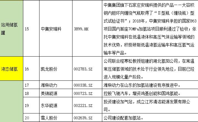 站用储氢罐方面,主要是中集安瑞科(03899。HK)。