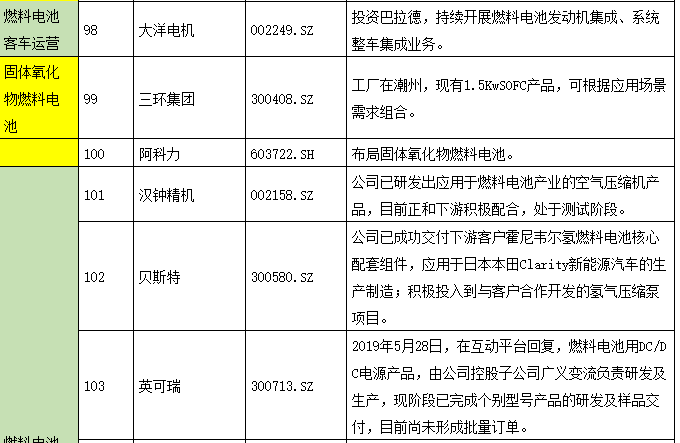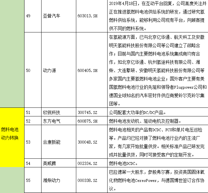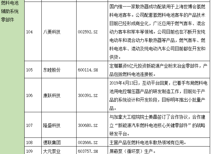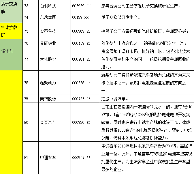 气体扩散层1家上市公司安泰科技(000969.SH);催化剂方面主要是贵研铂业(600459.SH)和太化股份(600282.SH)两家上市公司。