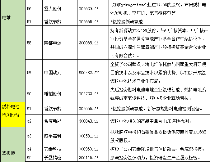 电堆业务方面,雄韬股份(002733.SZ)、中国动力(600482.SH)等6家企业参与。