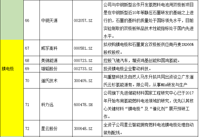 双极板方面,有4家上市公司参与。膜电极方面,6家上市公司参与。