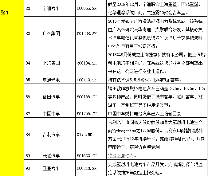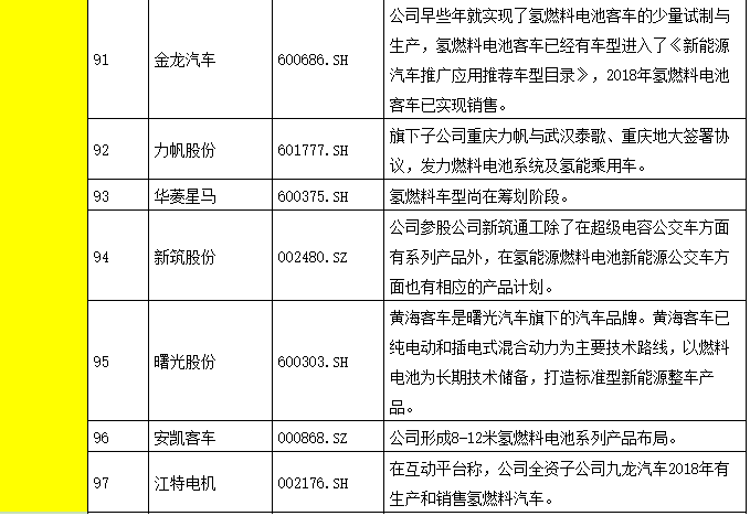产业下游整车业务来看,20家上市公司参与燃料电池整车业务,其中中通客车(000957.SH)为主流客车企业中实现批量生产车型最多的企业。也有上市公司的客车氢燃料车型尚在筹划阶段,比如新筑股份(002480.SH)。