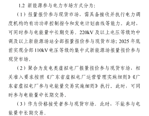 2025年底前实现全部110kV电压等级的集中式新能源场报量报价参与现货市场。