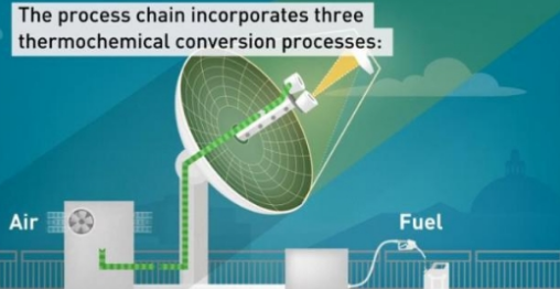该制程直接从环境空气中提取二氧化碳和水,用太阳能分解产生合成气体,即氢气和一氧化碳的混合物。合成气体可以加工成煤油、甲醇或其他烃类。这些加入式燃料可以用于目前全球的运输基础设施。