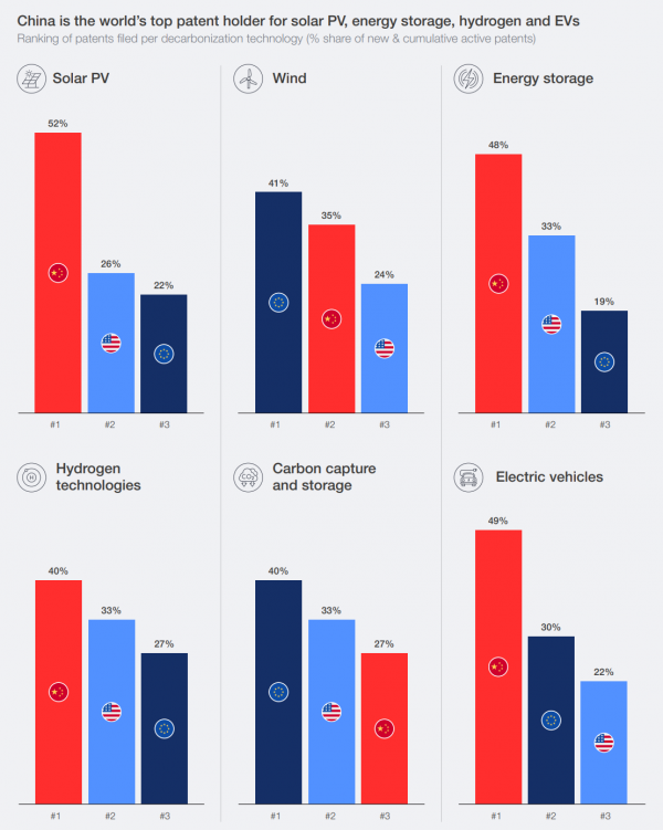 中国在太阳能、电动汽车和电池技术专利方面处于世界领先地位,重塑了全球供应链,并将绿色创新的中心转移到了东方。
