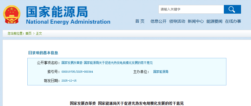 近日,国家发展改革委、国家能源局印发了《关于促进光热发电规模化发展的若干意见》(以下简称《意见》)。《意见》提出到2030年,我国光热发电发展总装机规模力争达到1500万千瓦左右,度电成本与煤电基本相当,技术实现国际领先并完全自主可控,行业实现自主市场化、产业化发展,成为新能源领域具有国际竞争优势的新产业。