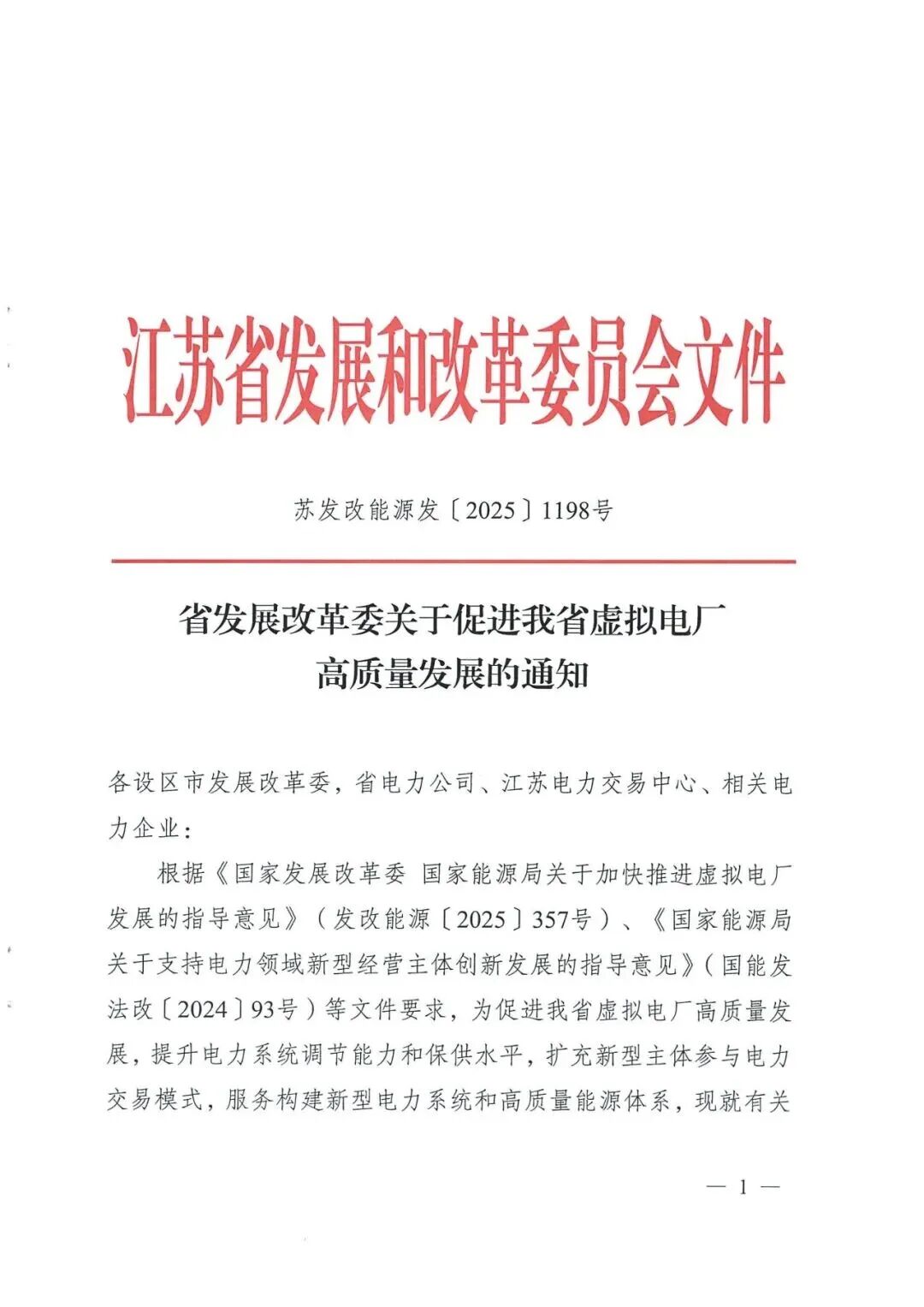 近日,江苏省发改委发布《关于促进我省虚拟电厂高质量发展的通知》(苏发改能源发〔2025〕1198号),明确到2030年全省虚拟电厂调节能力力争超500万千瓦,首批重点建设100个项目。