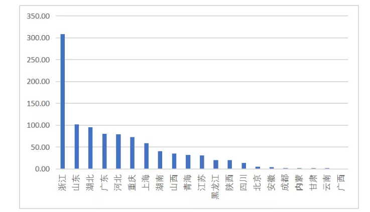 2019年上半年各省份氢能投资项目总金额情况(单位:亿元)