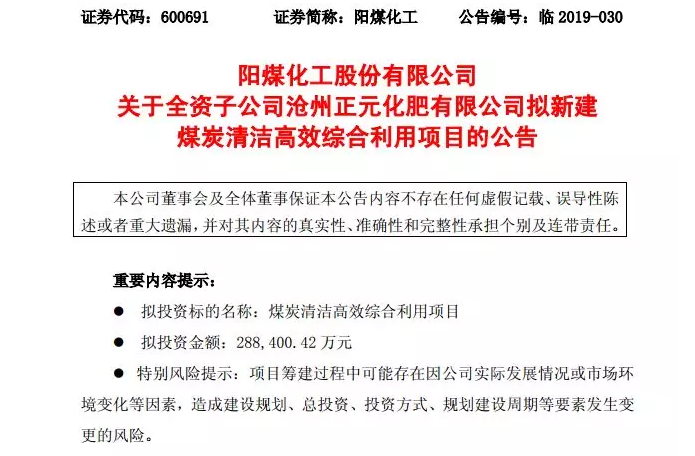 6月11日阳煤化工发布公告称,公司子公司正元集团全资子公司沧州正元拟投资28.84亿元新建“煤炭清洁高效综合利用项目”,该项目建成后将成为华北地区最大的氢气供应商。