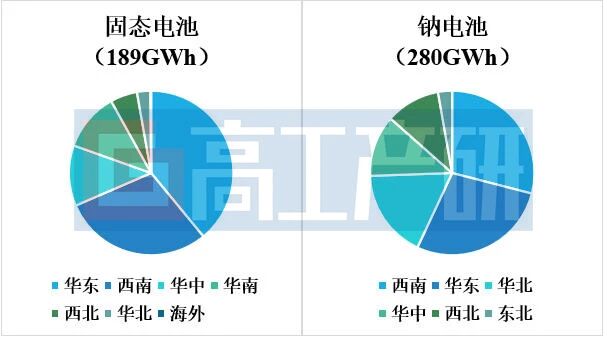 2025年中国固态电池、钠电池企业投资扩产项目产能区域分布(%)