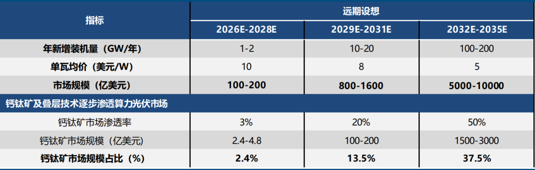 中信建投的预测更为乐观,认为太空数据中心在进入100GW年部署阶段后,相关光伏应用市场规模将达到5000亿至10000亿美元。