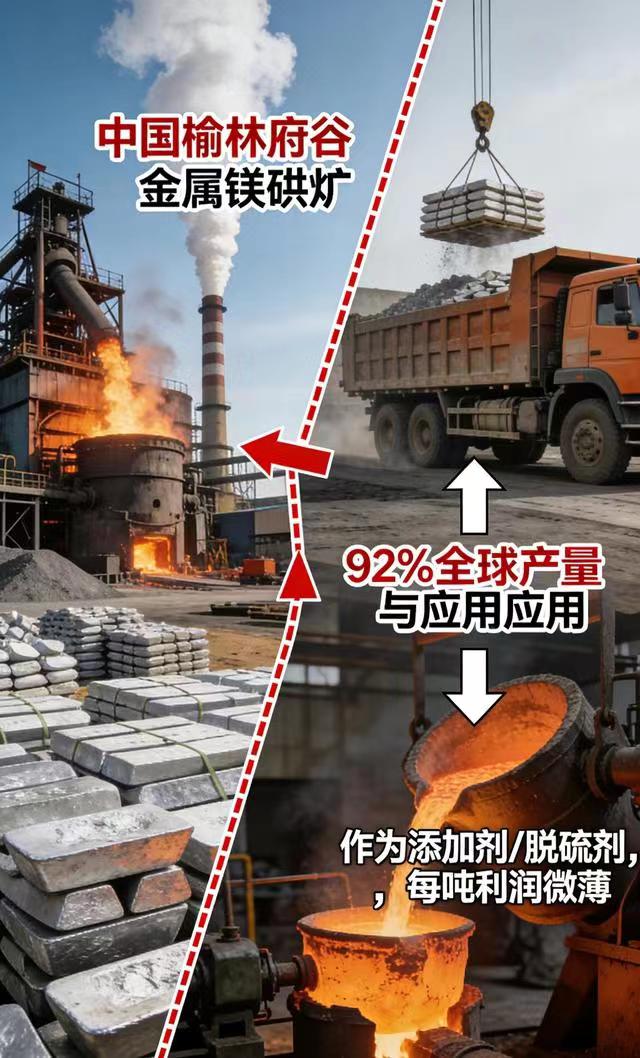 榆林府谷的冶炼炉日夜燃烧,产出全球最多的金属镁。但卡车运走的镁锭,大多不是去造轻量化汽车或飞机,而是作为添加剂融入铝水,或作为脱硫剂投入钢炉——每吨利润微薄。