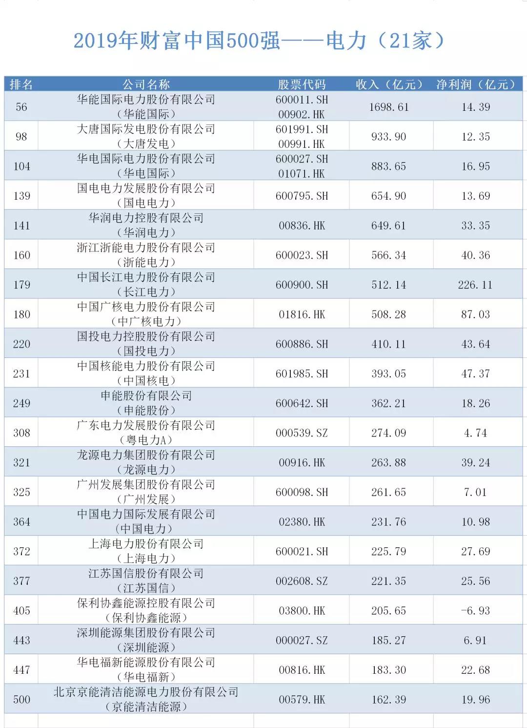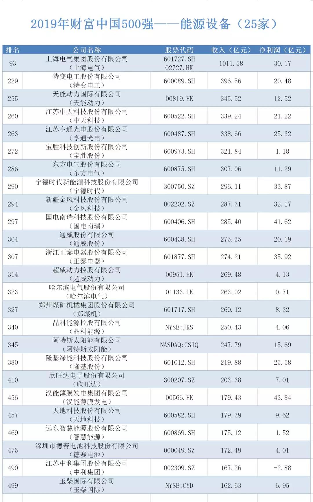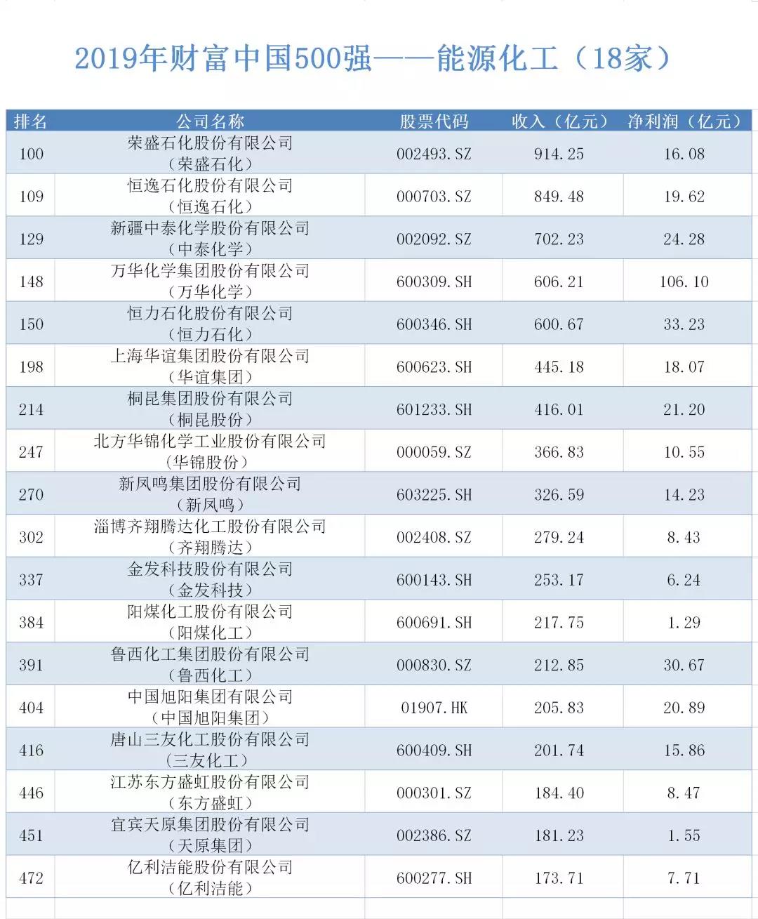 以下是进入2019年财富中国500强榜单的100家能源企业名单,你家公司上榜了吗?