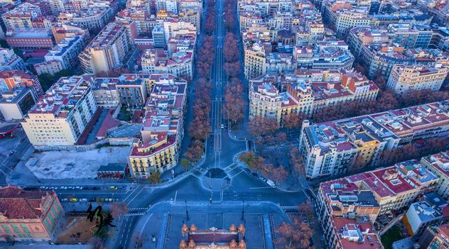 这个理念在当时的西班牙,相当于是挑战强权般的“作死”行为,几乎将整个贵族和王室都得罪了一遍。但才干非凡的伊莎贝拉女王却同意了塞尔达的方案,这才有了如今9平方公里面积被分为550个街区、相互间隔20米作为主干道,同时每个街区都有中心花园的巴塞罗那扩展区。