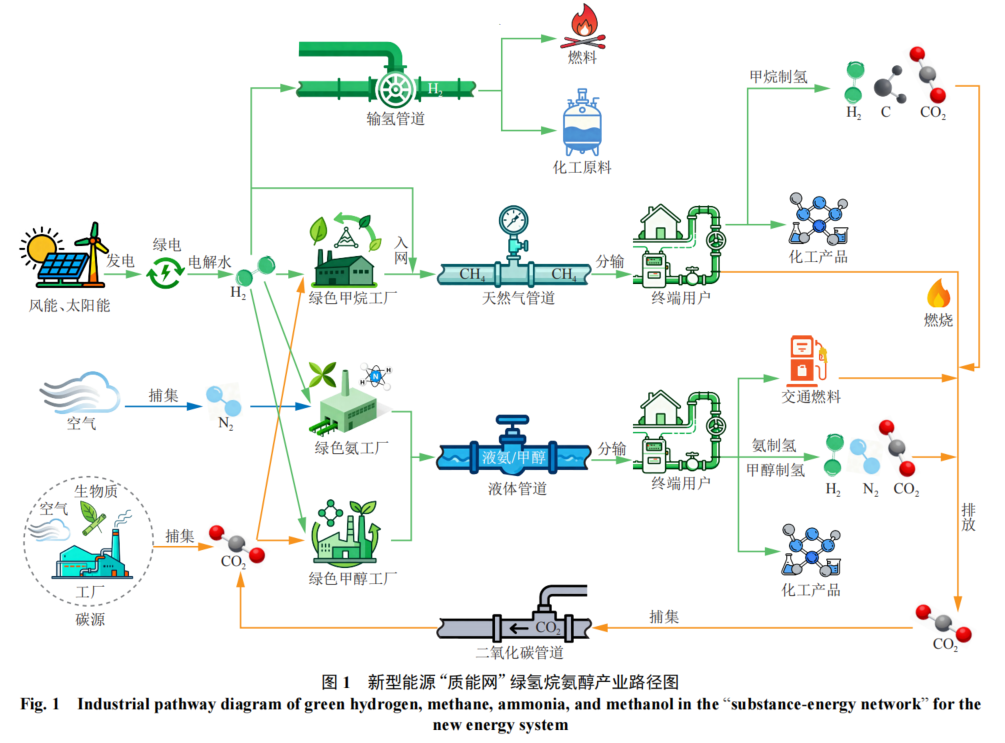 图说:新型能源“质能网”绿氢烷氨醇产业路径图来源:新型能源“质能网”体系构想