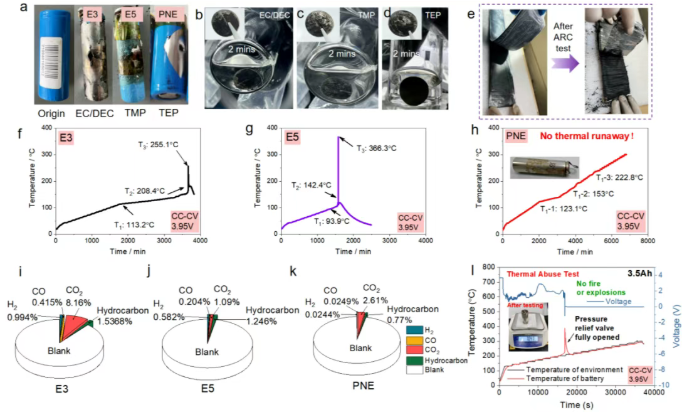 值得一提的是,此次安全技术突破并未以牺牲电池性能为代价,实现了“安全与性能”的双重提升。该团队研发的钠离子电池,不仅彻底阻断热失控,还兼具优异的宽温性能和耐高压稳定性,可在-40℃至60℃的极端温度范围内稳定工作,耐高压能力超过4.3V,即便在4.3V、211 Wh/kg(基于电芯重量计算)的高电压、高比能安时级软包电芯中,依然能稳定运行并通过针刺试验,电芯不冒烟、不起火、不爆炸。更具产业化价值的是,电池所采用的材料均为成熟的工业化产品,无需新增特殊生产设备,具备极高的产业化竞争优势,为后续规模化生产奠定了坚实基础。
