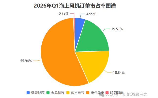 电气风电:号称“海上风电首选品牌”,拥有国内最全的海上项目样本库,2026年第一季度以55.94%的份额强势回归市场第一。