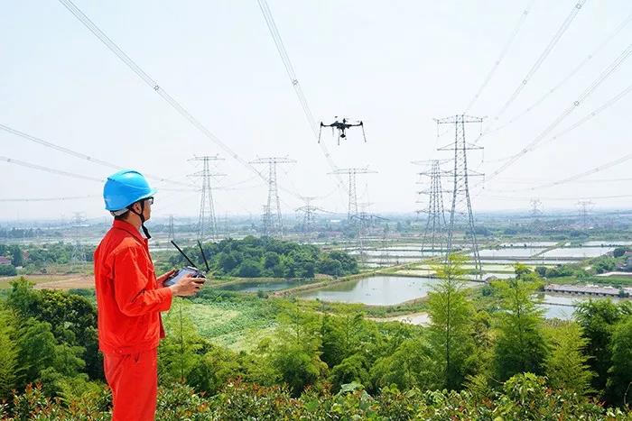 利用5G通信技术巡视特高压太湖廊道。(姚羽霞 摄)