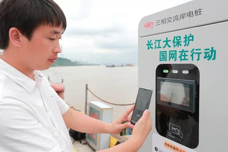 岸电客户在湖北宜昌云池港通过移动支付扫码使用清洁电能。(陶桃)