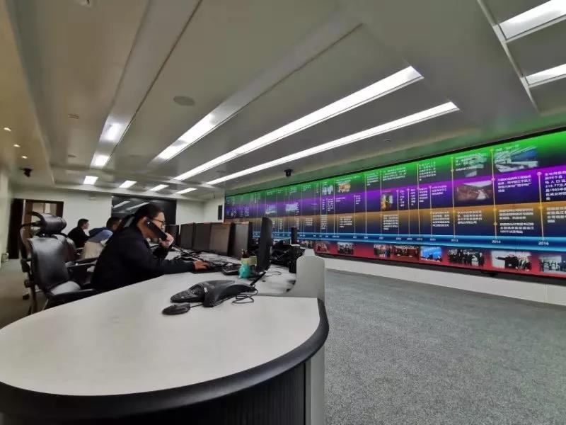财务人员在资金管控中心信息大屏前核对数据。(张玉峰 摄)
