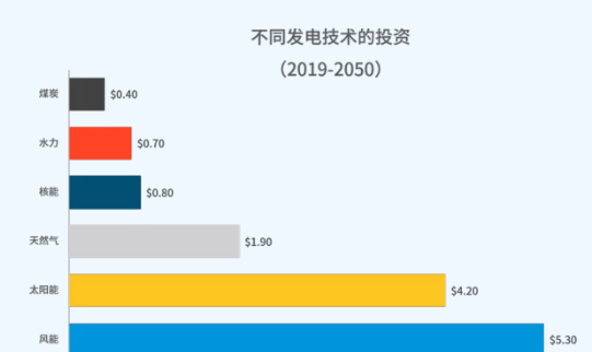风能与太阳能的投资将分别达到5.3万亿美元和4.2万亿美元
